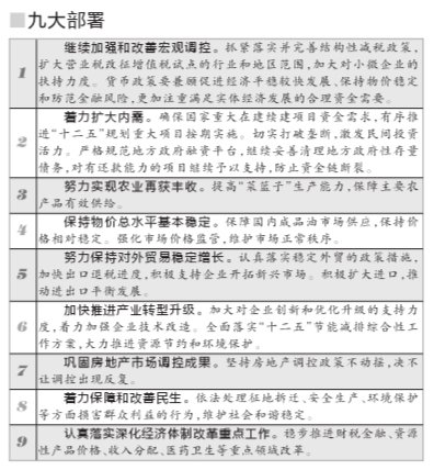 会议对下一阶段重点工作做了继续加强和改善宏观调控、着力扩大内需等9方面部署,要求巩固房地产市场调控成果,决不让调控出现反复。