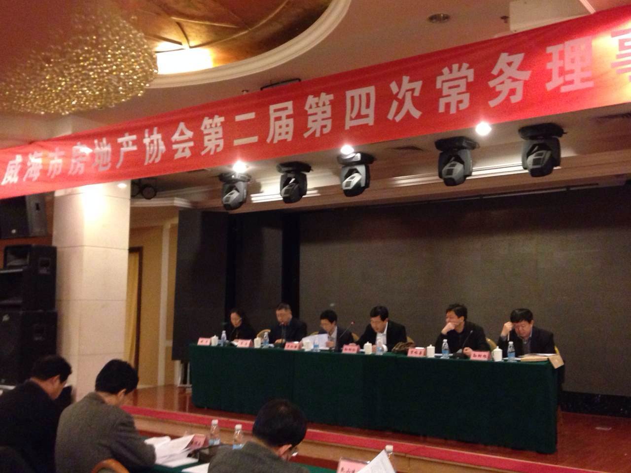 市房协二届四次常务理事会今天下午在塔山宾馆召开。会议由市房协秘书长宋岩主持,市住建局副局长吕仁静、市住建局开发办主任臧华及来自全市房地产行业的100多家常务理事单位的代表参加本次会议。房协轮值会长孙树仁在会上向会议做了协会2014年工作总结及2015年工作计划的报告,臧华主任宣读了2014年度威海市房地产开发系列奖评选结果。