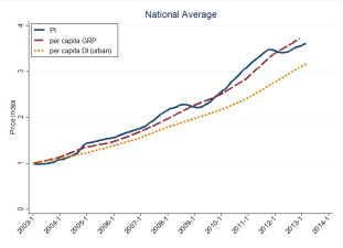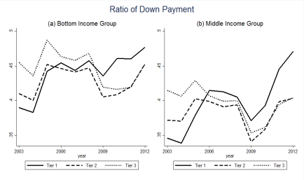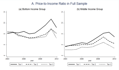 第一,我们的数据显示中国城市的住房价格已经经历巨大升值,虽然增长异常,但是在全国水平上,房价与居民收入增长是可比的,并且低收入家庭保持稳定的参与度。