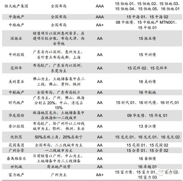 最新报告中指出,去库存责任明确,但从各地级市去库存任务来看,任务并不是很重,压力在于部分城市,难以拉动新增投资。不过,去库存下,房地产企业的现金回笼有望加速回流。特别的,对于广州来说,限购有可能取消,在广州布局较多的发债主体有望收益。发债主体有望收益的前几名分别是:万科、保利、金地、恒大、中海等。