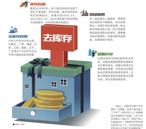 其中,浙江省制订方案为农民进城购房创造条件,将全面取消县(市)购房落户条件限制,放宽除杭州外的设区市市区购房落户关于建筑面积、资金额度要求,并力争到2017年,浙江省在售商品住宅库存消化周期的控制目标为10至16个月;湖南省郴州市则采取推进棚改货币化安置、组织外地购房团来郴州看房购房等措施。
