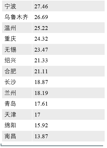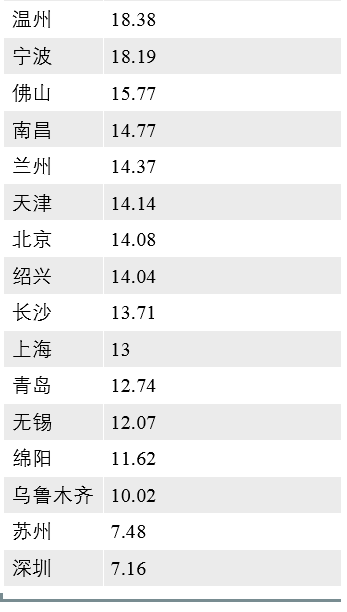 中国房地产报记者独家统计的30个主要城市房地产投资依赖度排行榜显示,固定资产投资对地产投资依赖度超过25%合理值的城市有20个,前10名分别是上海、北京、中山、济南、深圳、珠海、佛山、苏州、西安、惠州。而GDP对地产投资依赖度超过10%合理值的城市则有28个,前10名分别是贵阳、福州、西安、郑州、珠海、济南、合肥、廊坊、厦门、武汉,多属于当前楼市火热的二线城市。