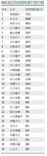 标杆房企存货周转能力排行榜 九龙仓周转最快 华发股份存货周转期19年