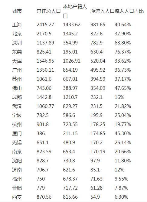 表2:主要城市外来人口占比