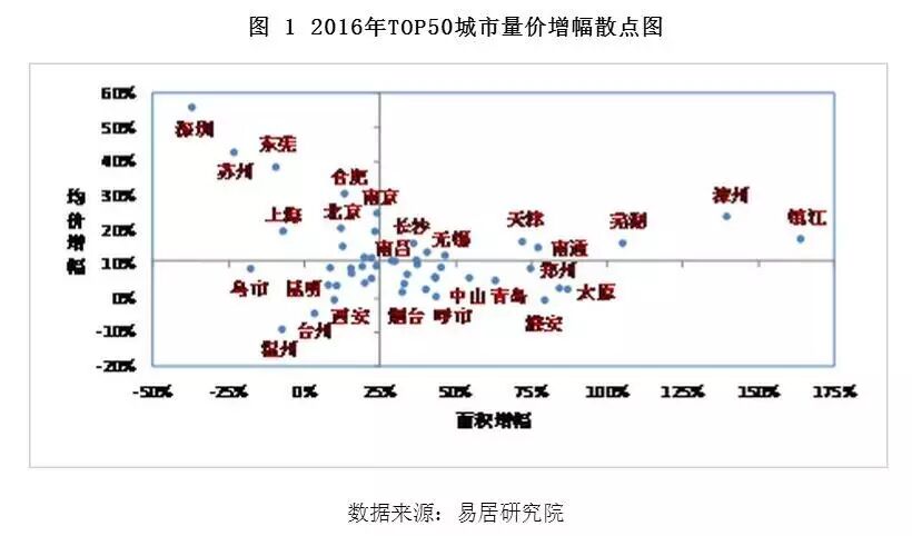 五、 2016年TOP50城市的量价增幅散点图