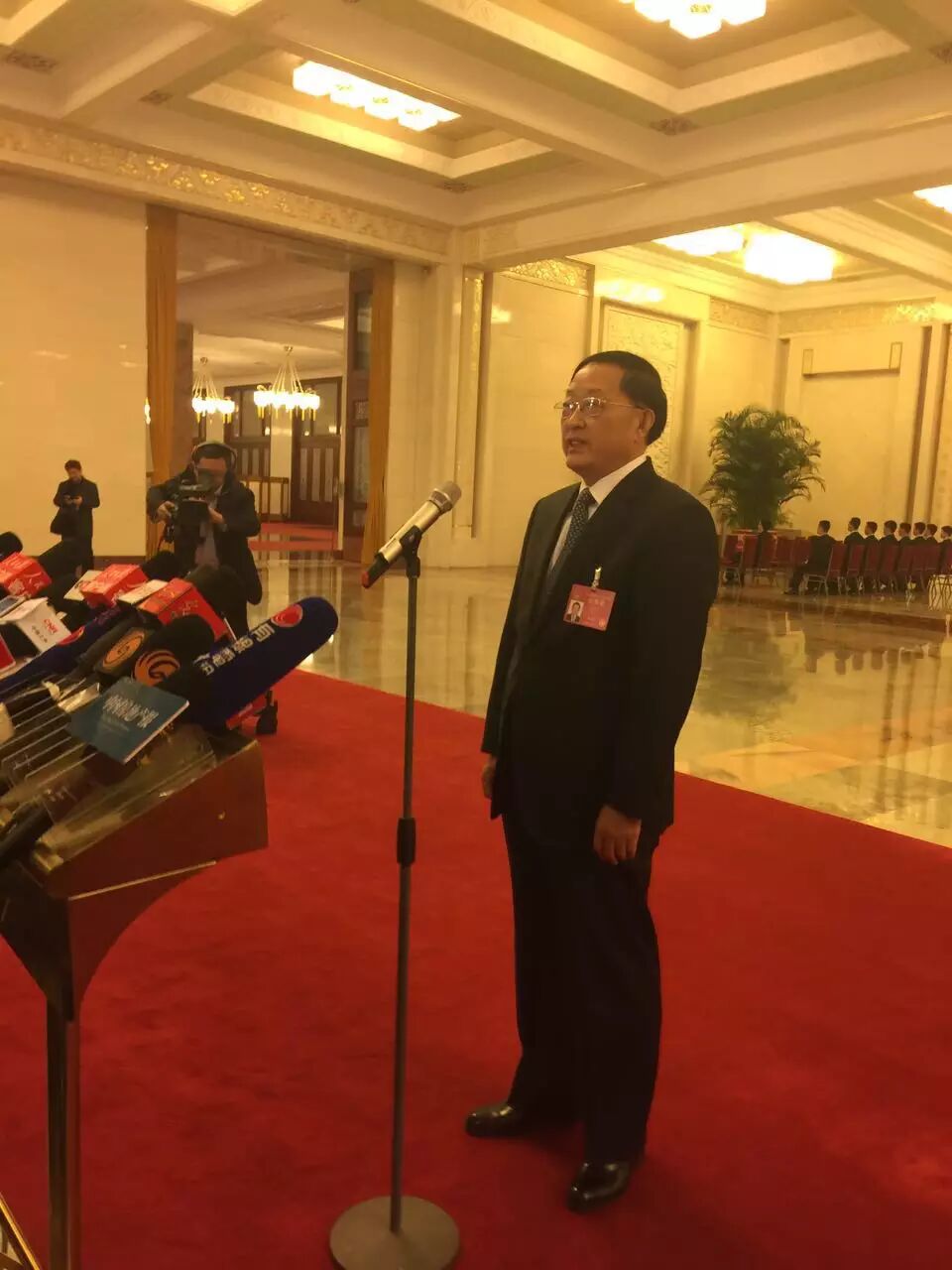 短暂的采访之后,陈政高便匆匆从北大厅北门的这条通道走向人民大会堂。在去年的部长通道,陈政高也接受了记者采访,关注的重心也是棚户区改造。与今年不一样的是,去年侧重介绍棚户区改造的整体目标和内容。